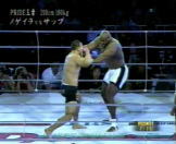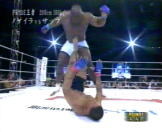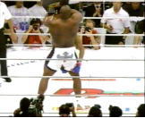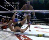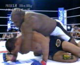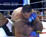 | 怪物サップが、スリータイムチャンピオンのホーストを圧倒!序盤ホーストの連携に惑わされローを何発もいれられるものの、脅威的な打たれ強さでホーストの猛攻を凌ぎ最後はコーナにつめてのラッシュ!1R終了後額をカットしたホーストの怪我が深く切れてるためTKO勝ちでホーストを破った。やっぱクリンチのない試合はめりはりが良くて面白いわ!(w PRIDEの王者に続きK1の元王者まで圧倒し勝利したサップ最強!! |